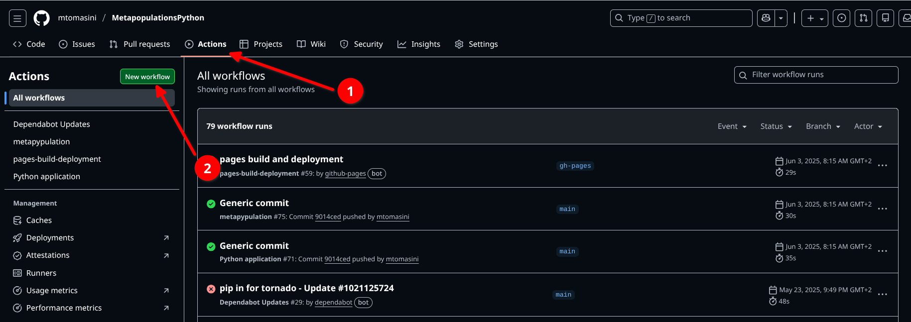 There are several CI tools that can be used, one of the most accessible is Github Actions (but do check out GitLab CI if you work on Gitlab). CI pipelines can also be run locally, specifically to deal with tasks that depend on several pieces of code that are connected in complicated ways. We’ve written a brief introduction to GitHub Actions to help get you started: